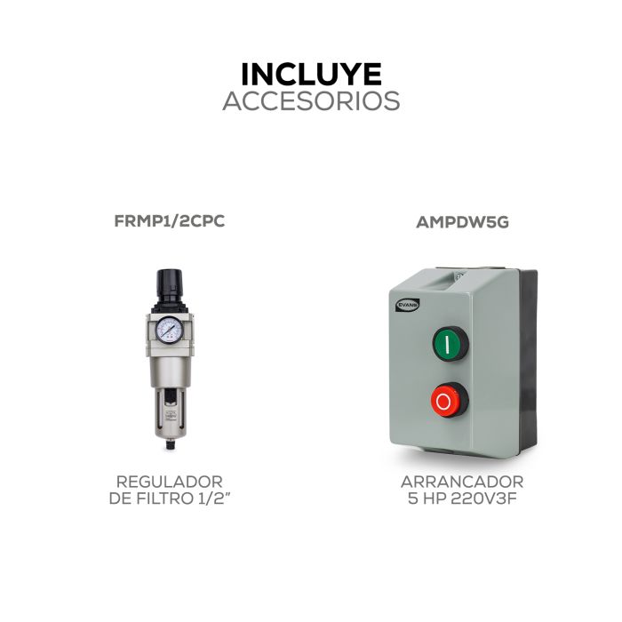 Incluye: Regulador de filtro 1/2″, y arrancado.