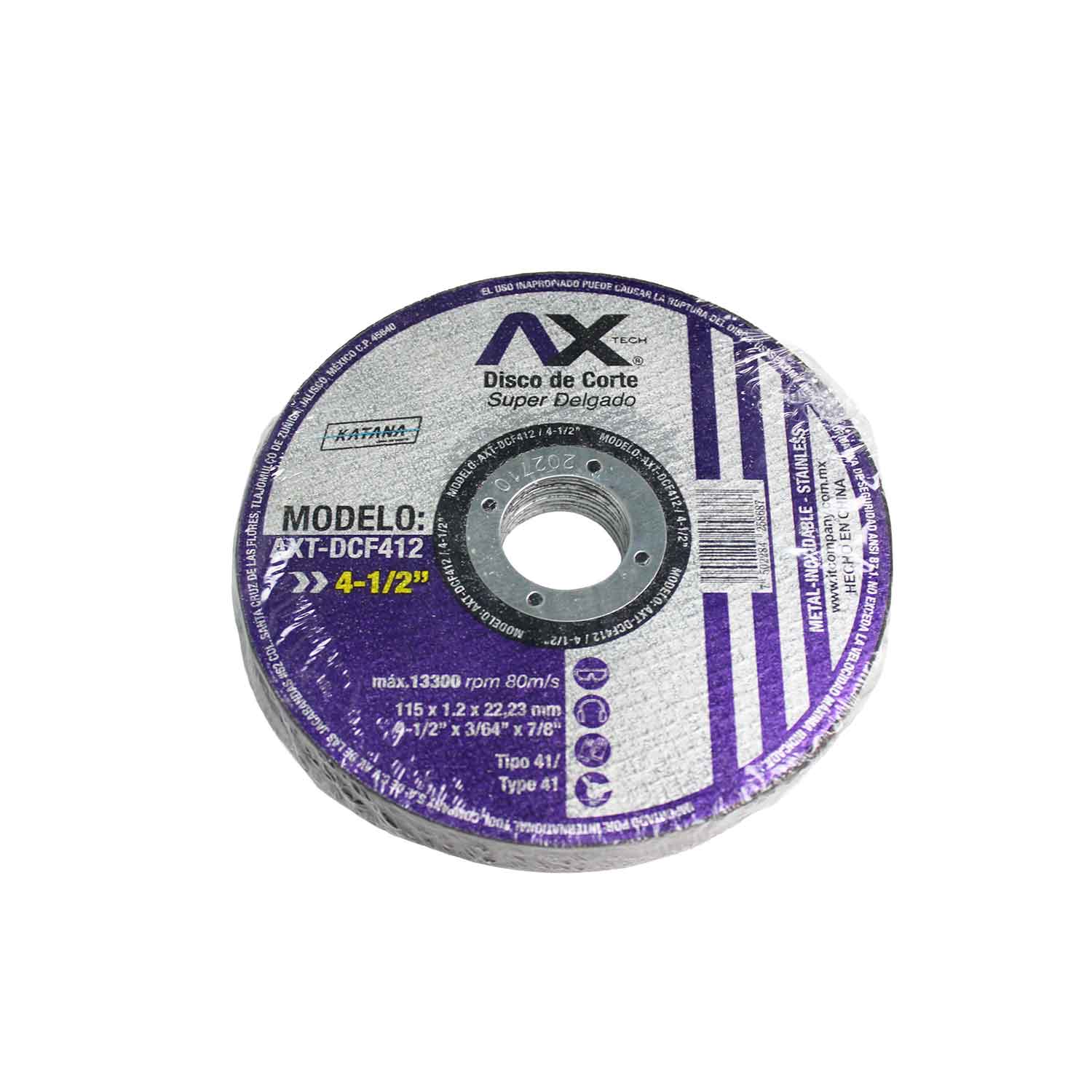 Disco de Corte Súper Delgado AXT-DCF412 4 1/2″ (115×1.2×22.23 mm) Tipo 41 – Metal/Inox, 13,300 rpm. Paquete de 200 unidades.