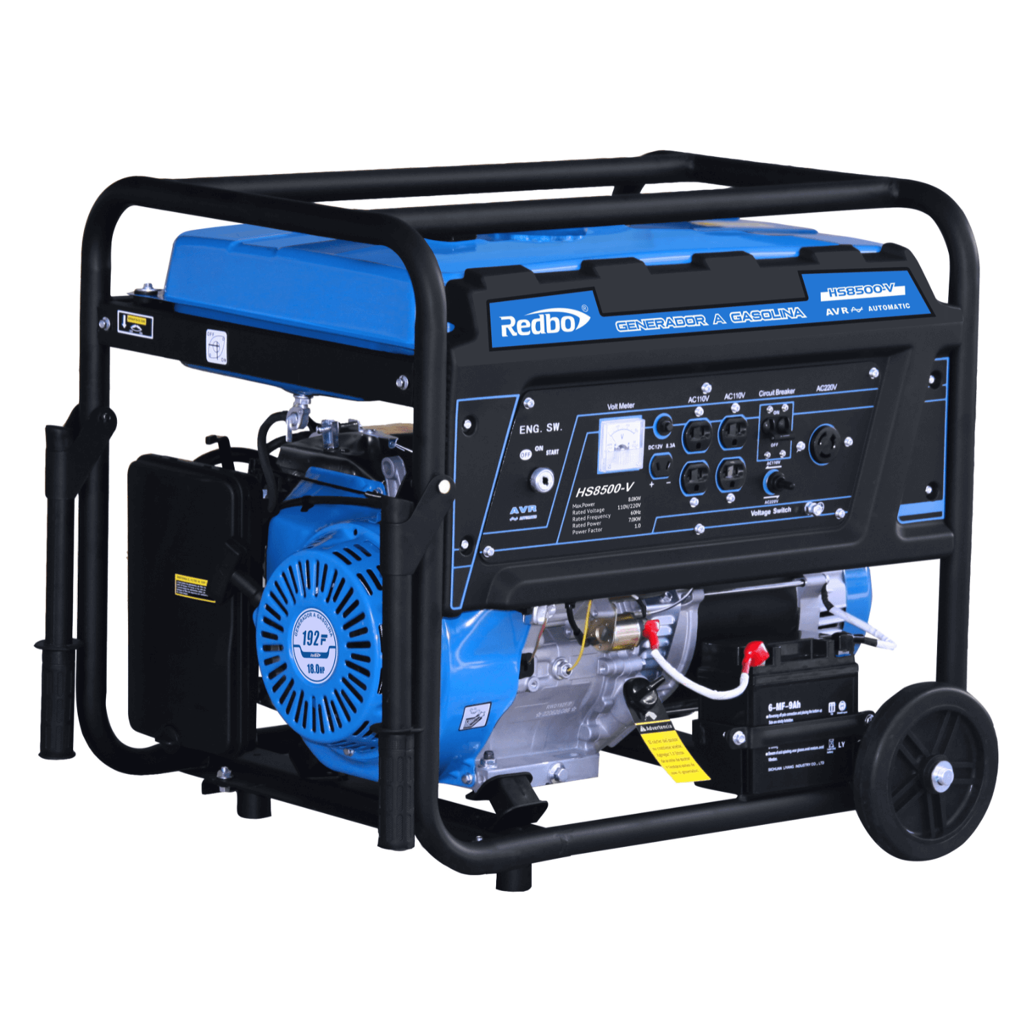 El Generador monofásico a gasolina HS8500-V es tu aliado cuando necesitas energía confiable en cortes de luz o en sitios sin red. Al ser un generador 7500W de potencia máxima y 7,000 W nominales, alimenta electrodomésticos críticos, equipos comerciales y herramientas eléctricas sin complicaciones. Su motor de 4 tiempos (16 HP), enfriado por aire, opera a 3600 RPM, mientras el AVR (regulador automático de voltaje) ayuda a mantener salida estable para proteger equipos sensibles.