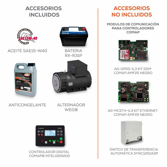 | Módulo Controlador | Digital COMAP INTELIGEN200 (Apto para sincronismo) |