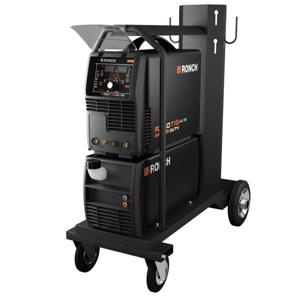 La R350TIG AC/DC es una soldadora TIG de alta frecuencia y pulso AC/DC con memorias, pre/post flujo, rampa subida/bajada y balance de onda (cuadrada/seno/triangular). Opera en 1F/3F 220–240 V, trae antorcha PRO18 refrigerada por agua, carro y enfriador.