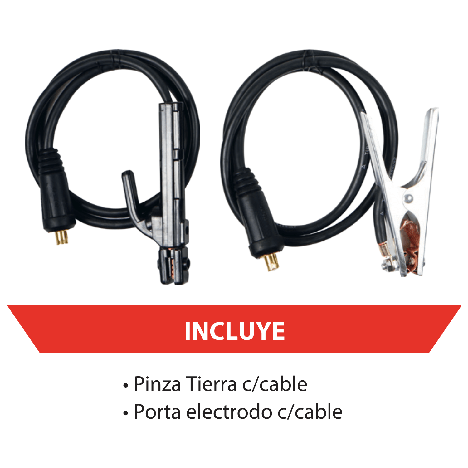 Incluye pinza tierra con cable y porta electrodo con cable, de modo que solo necesitas tus electrodos 6013 y el equipo de protección personal para comenzar a soldar.